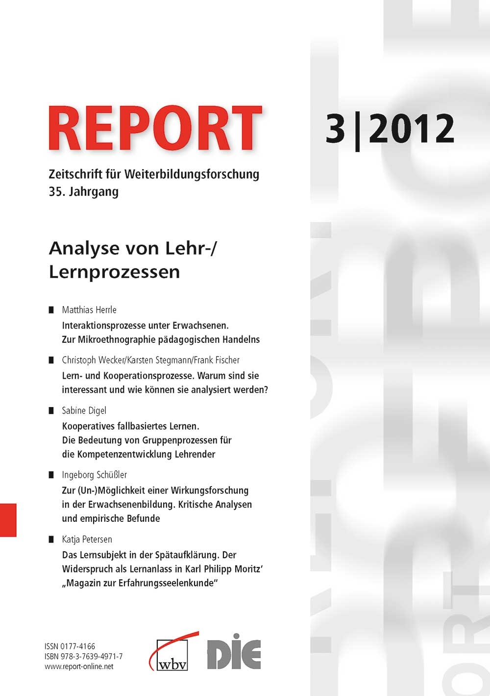 Für das Lernen mit Fällen ist die Arbeit in kleinen Gruppen konstitutiv. Am Beispiel des Lernens mit Videofällen in Train-the-Trainer-Kursen der Weiterbildung wird in dem vorliegenden Beitrag die Frage untersucht, wie sich die Kleingruppenprozesse inhaltlich und strukturell darstellen und welche Auswirkungen sie auf die Kompetenzentwicklung und die Akzeptanz bei Teilnehmern an fallbasierten Fortbildungen haben. Die präsentierten Ergebnisse bieten Aufschluss über den Verlauf von situierten, problembasierten Lernprozessen in Kleingruppen, wie sie in der Erwachsenenbildung weite Verbreitung finden.