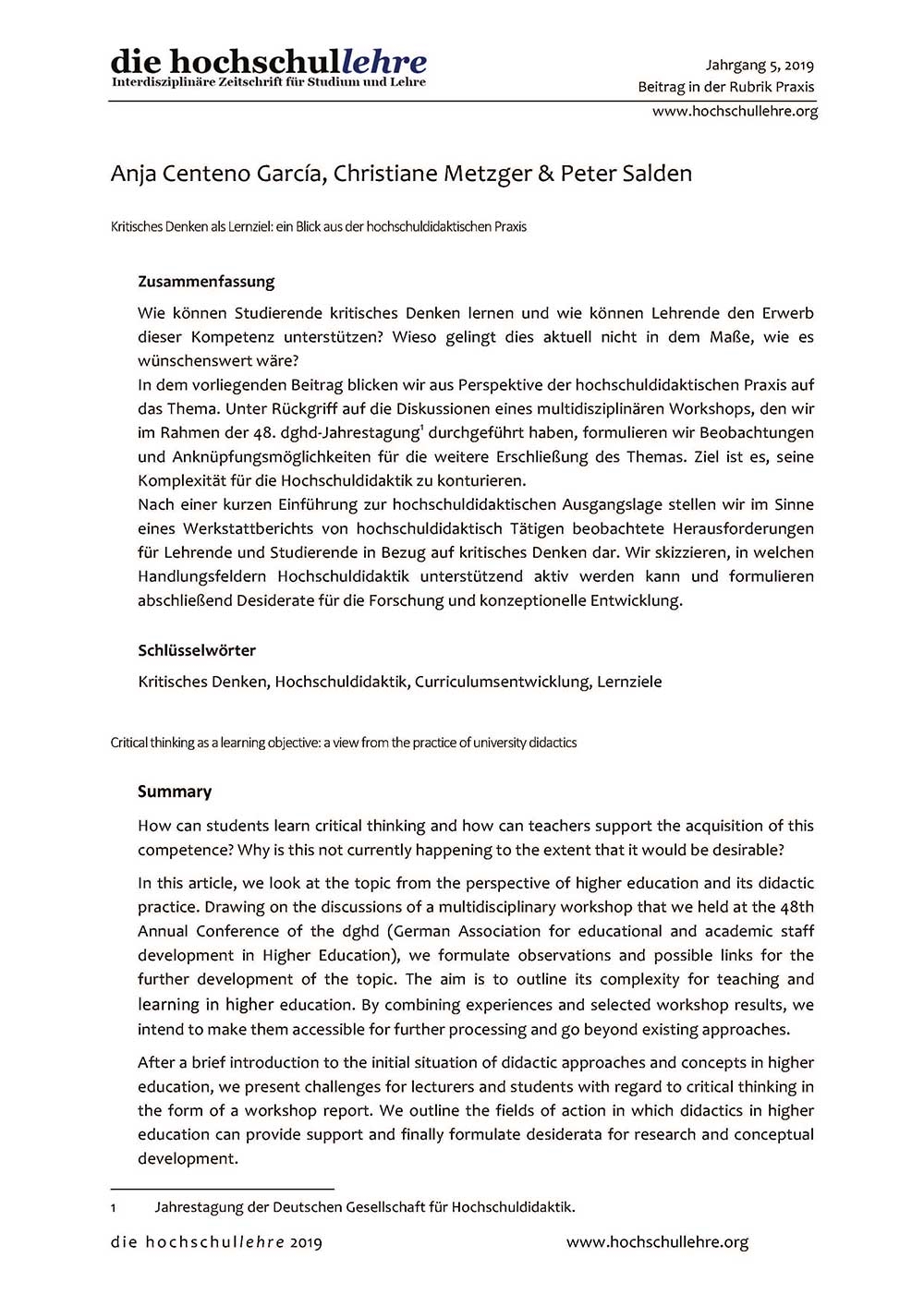 In dem vorliegenden Beitrag blicken wir aus Perspektive der hochschuldidaktischen Praxis auf das Thema. Unter Rückgriff auf die Diskussionen eines multidisziplinären Workshops, den wir im Rahmen der 48. dghd-Jahrestagung durchgeführt haben, formulieren wir Beobachtungen und Anknüpfungsmöglichkeiten für die weitere Erschließung des Themas. Ziel ist es, seine Komplexität für die Hochschuldidaktik zu konturieren. Nach einer kurzen Einführung zur hochschuldidaktischen Ausgangslage stellen wir im Sinne eines Werkstattberichts von hochschuldidaktisch Tätigen beobachtete Herausforderungen für Lehrende und Studierende in Bezug auf kritisches Denken dar. Wir skizzieren, in welchen Handlungsfeldern Hochschuldidaktik unterstützend aktiv werden kann und formulieren abschließend Desiderate für die Forschung und konzeptionelle Entwicklung.