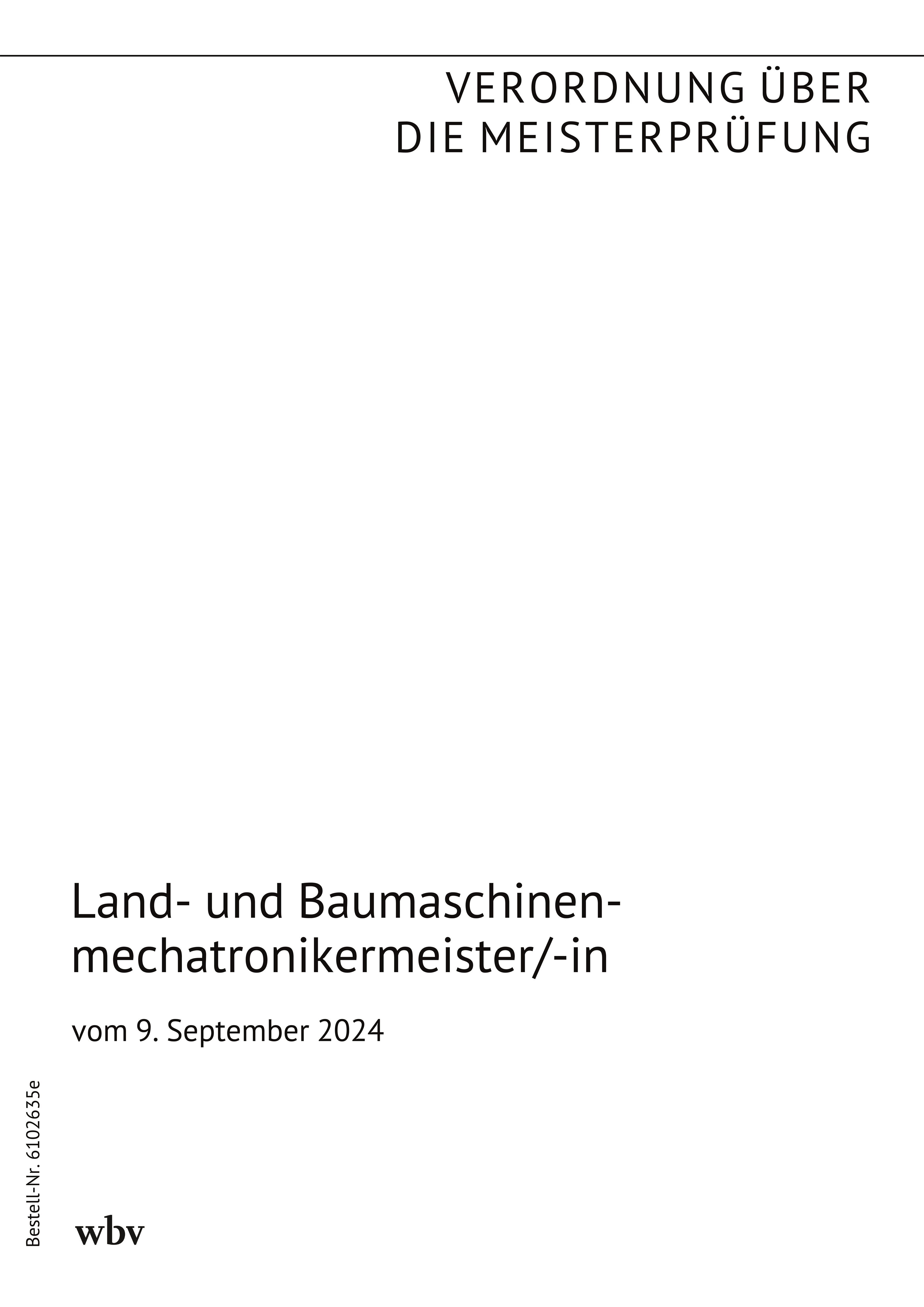 Verordnung über die Meisterprüfung in den Teilen I und II im Land- und Baumaschinenmechatroniker-Handwerk (Land- und Baumaschinenmechatronikermeisterverordnung - LandBauMechMstrV) vom 9. September 2024 (BGBl. I Nr. 277 vom 13. September 2024)