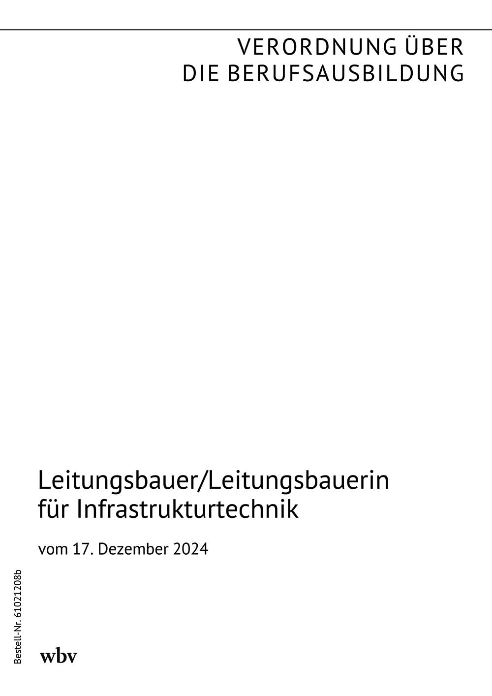 Verordnung zur Neuordnung der Ausbildung in der Bauwirtschaft vom 3. Juni 2004 (BGBI. I Nr. 179 vom 6. Juni 2024), Verordnung über die Berufsausbildung in Tiefbauberufen (Tiefbauberufeausbildungsverordnung - TiefbauBAusbV), nebst Rahmenlehrplan für die Berufsausbildung in Tiefbauberufen (Beschluss der Kultusministerkonferenz vom 29.09.2023), geändert durch die Verordnung zur Änderung der Tiefbauberufeausbildungsverordnung, der Hochbauberufeausbildungsverordnung sowie der Ausbauberufeausbildungsverordnung vom 17.12.2024 (BGBl. Nr. 425 vom 23.12.2024)