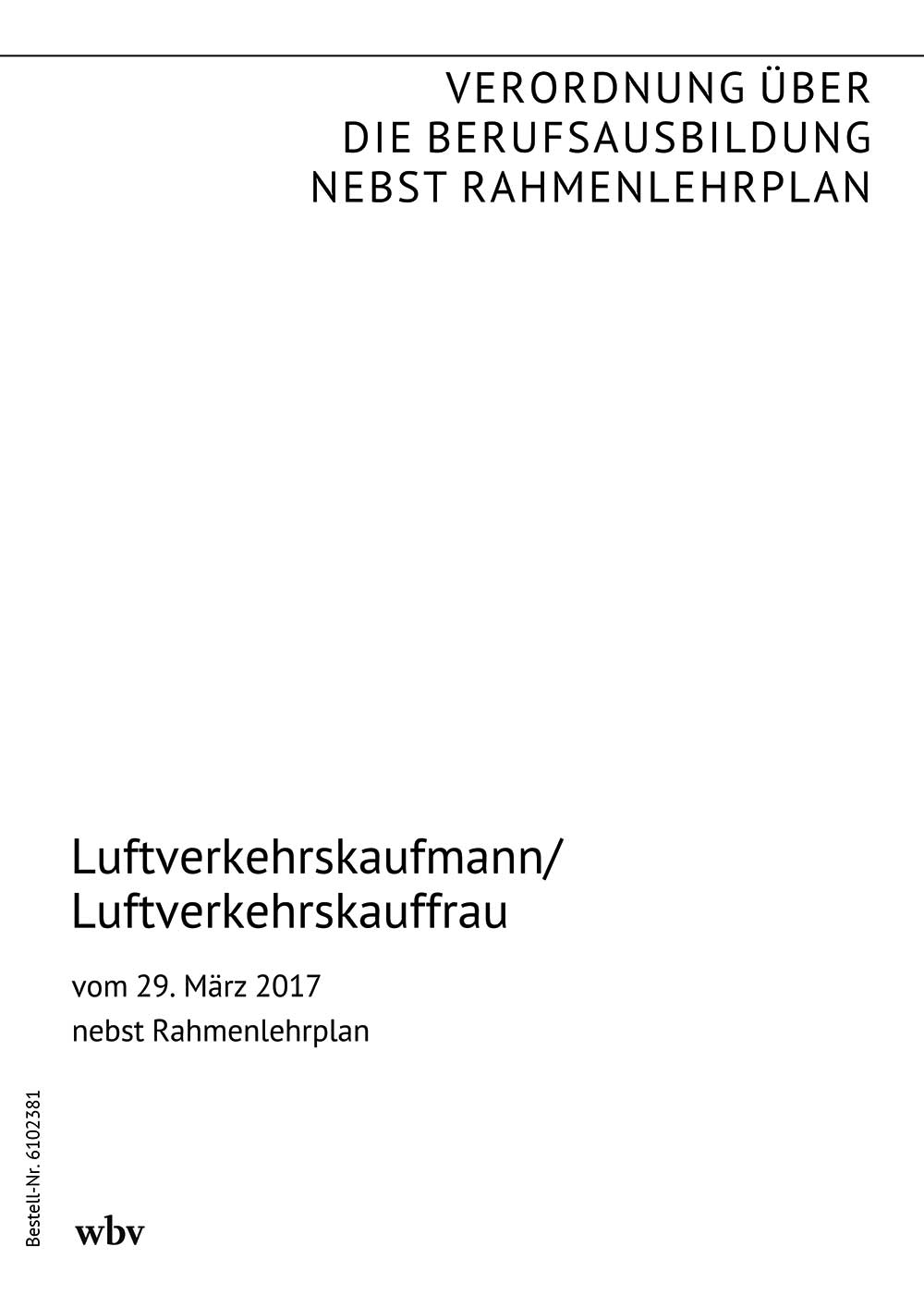 Verordnung über die Berufsausbildung zum Luftverkehrskaufmann und zur Luftverkehrskauf frau vom 29. März 2017 (BGBl. I S. 668 vom 4. April 2017) nebst Rahmenlehrplan (Beschluss der Kultusministerkonferenz vom 25. November 2016)