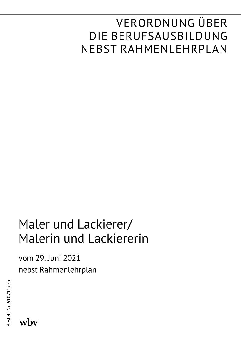 Verordnung über die Berufsausbildung zum Maler und Lackierer und zur Malerin und Lackiererin vom 29. Juni 2021 (BGBl. I S. 2300) nebst Rahmenlehrplan (Beschluss der Kultusministerkonferenz vom 18. Dezember 2020)
