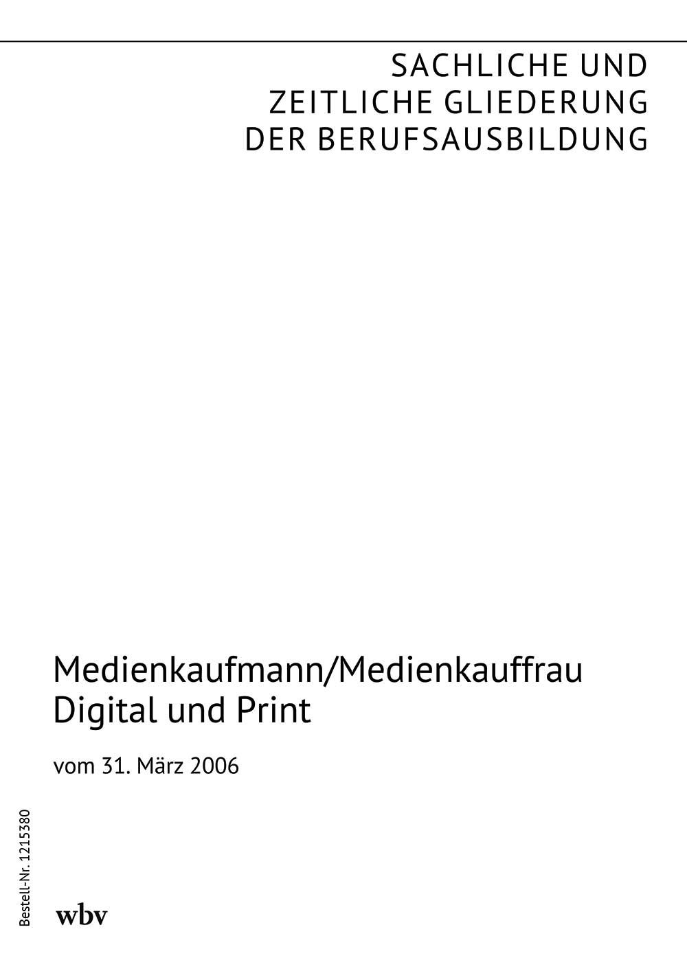 Die sachliche und zeitliche Gliederung der zu vermittelnden Kenntnisse und Fertigkeiten laut Ausbildungsrahmenplan der Ausbildungsverordnung vom 31. März 2006