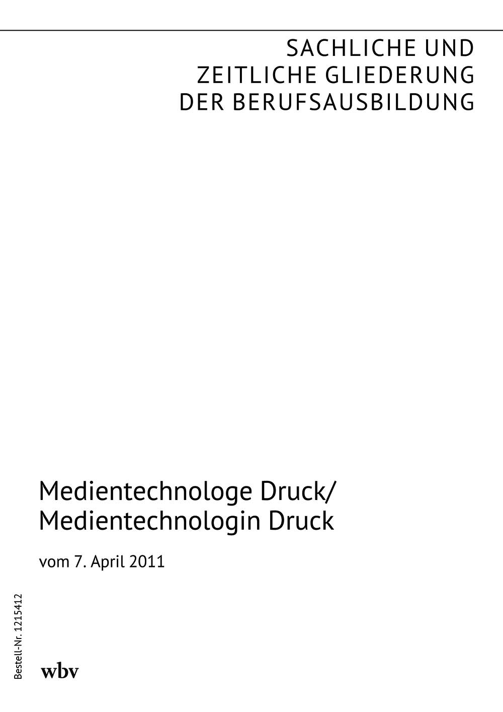 Die sachliche und zeitliche Gliederung der zu vermittelnden Kenntnisse und Fertigkeiten laut Ausbildungsrahmenplan der Ausbildungsverordnung vom 7. April 2011
