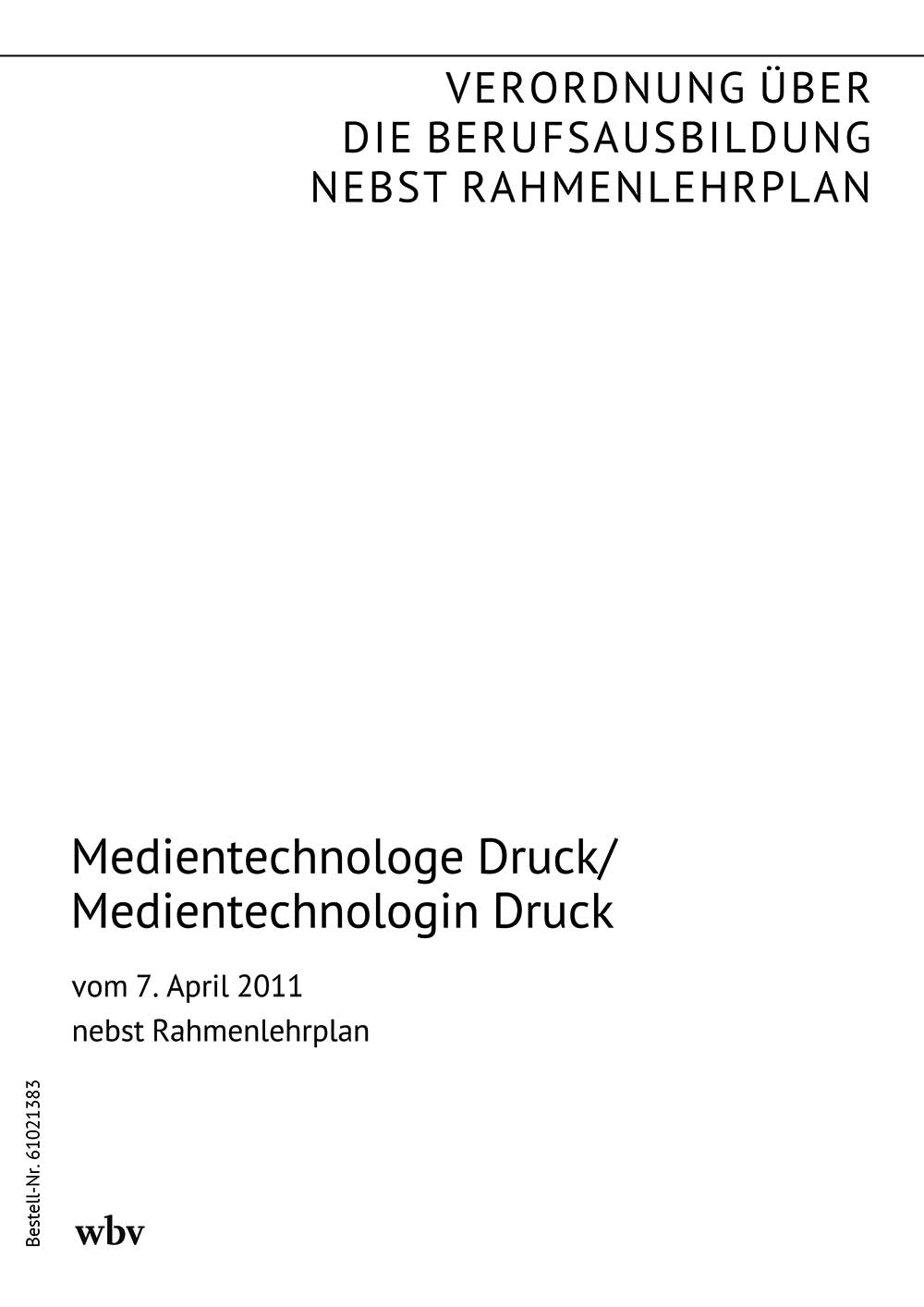Verordnung über die Berufsausbildung zum Medientechnologen Druck/zur Medientechnologin Druck vom 7. April 2011 (BGBl. I S. 570 vom 13. April 2011) nebst Rahmenlehrplan (Beschluss der Kultusministerkonferenz vom 4. Februar 2011)