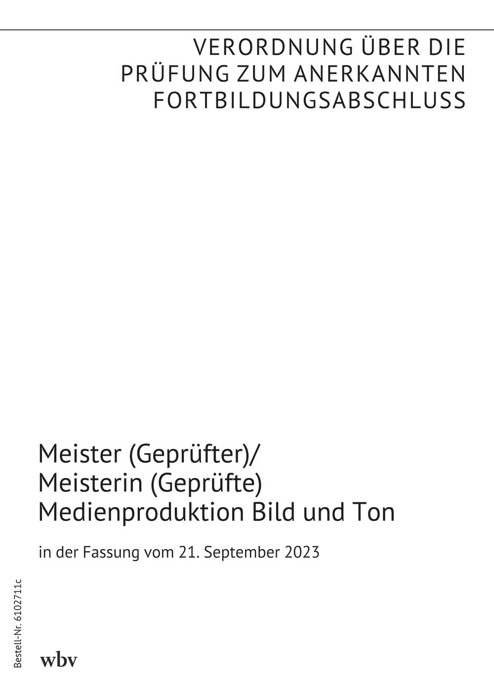 Verordnung über die Prüfung zum anerkannten Fortbildungsabschluss mit der Bezeichnung Geprüfter Meister für Medienproduktion Bild und Ton oder Geprüfte Meisterin für Medienproduktion Bild und Ton - Bachelor Professional in Medienproduktion Bild und Ton (Bild-und-Ton-Medienproduktionsmeister-Bachelor-Professional- Fortbildungsverordnung - BuTMedienMstrBAProFV)