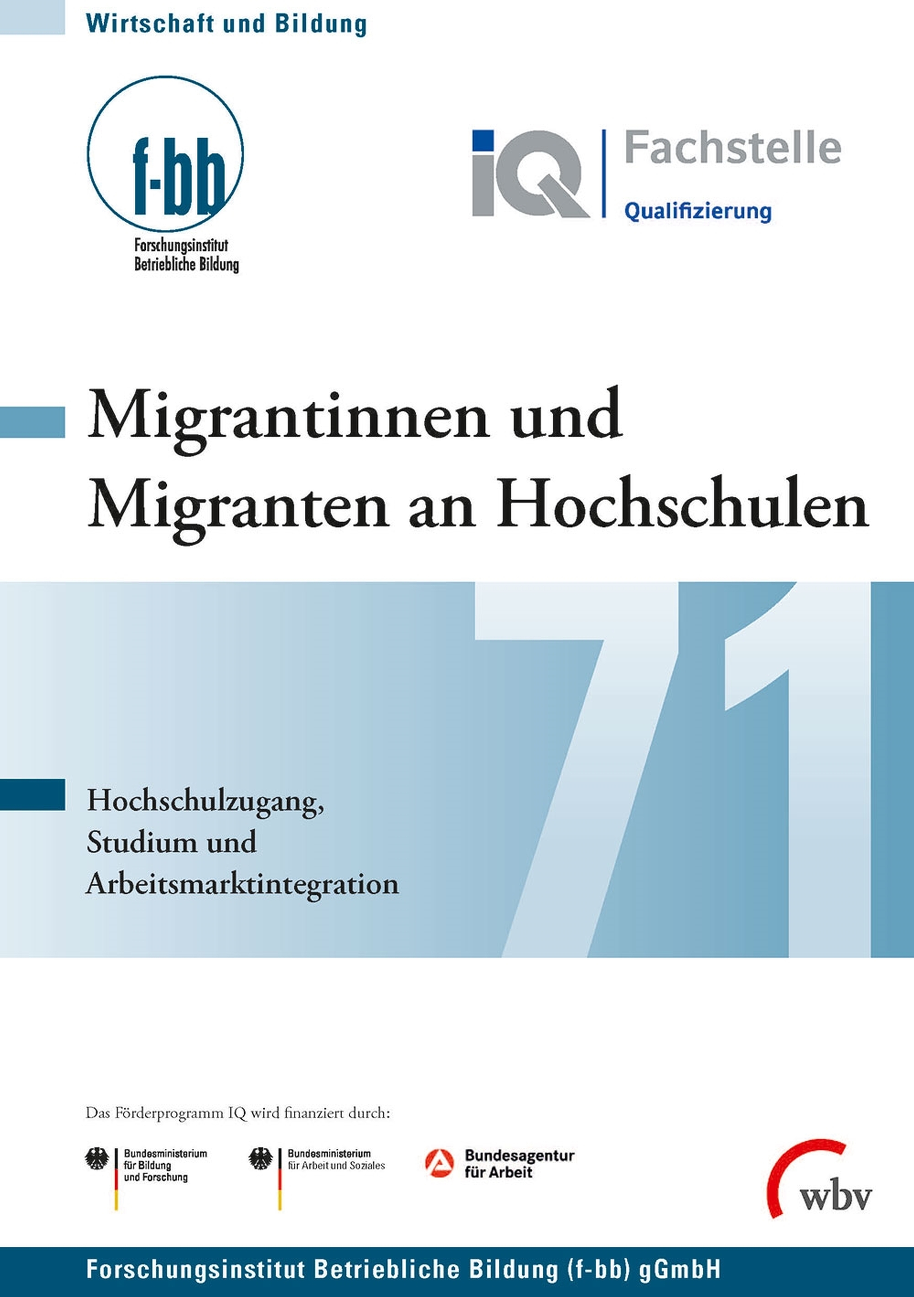 Die Studie deckt Forschungslücken auf und erstellt konkrete Handlungsempfehlungen für Politik, Hochschulen und Unternehmen. Die Daten für die Studie wurden im Rahmen des Förderprogramms 'Integration durch Qualifizierung (IQ)' erstellt und ausgewertet. Das Förderprogramm zielt auf die nachhaltige Verbesserung der Arbeitsmarktintegration von Erwachsenen mit Migrationshintergrund ab. Daran arbeiten bundesweit 16 Landesnetzwerke, die von Fachstellen zu migrationsspezifischen Schwerpunktthemen unterstützt werden. Das Programm wird durch das Bundesministerium für Arbeit und Soziales, das Bundesministerium für Bildung und Forschung und die Bundesagentur für Arbeit gefördert.