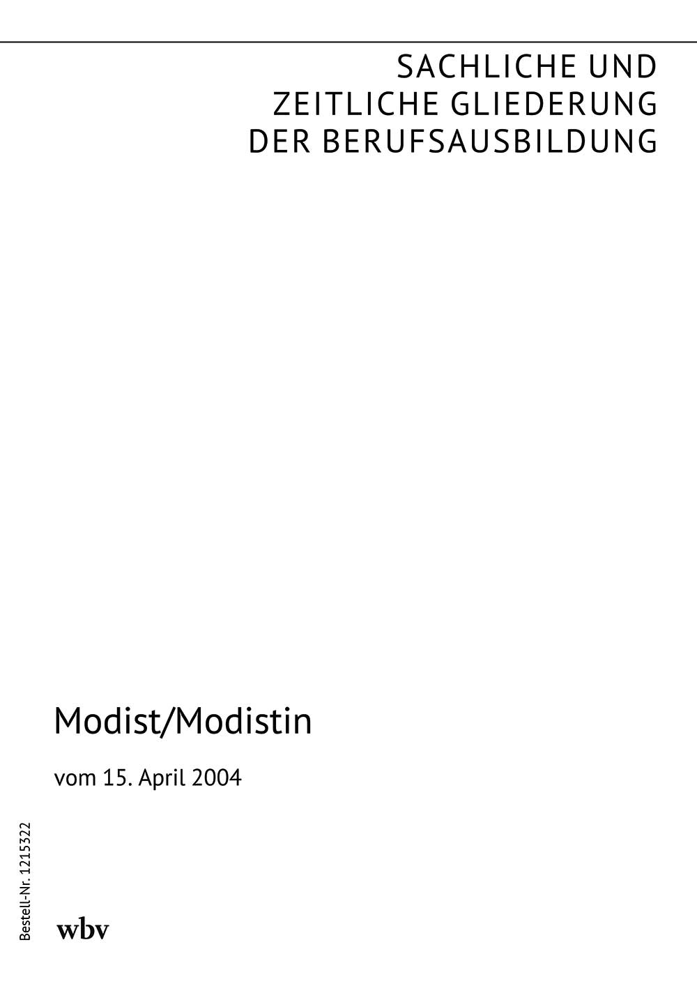 Die sachliche und zeitliche Gliederung der zu vermittelnden Kenntnisse und Fertigkeiten laut Ausbildungsrahmenplan der Ausbildungsverordnung vom 15. April 2004