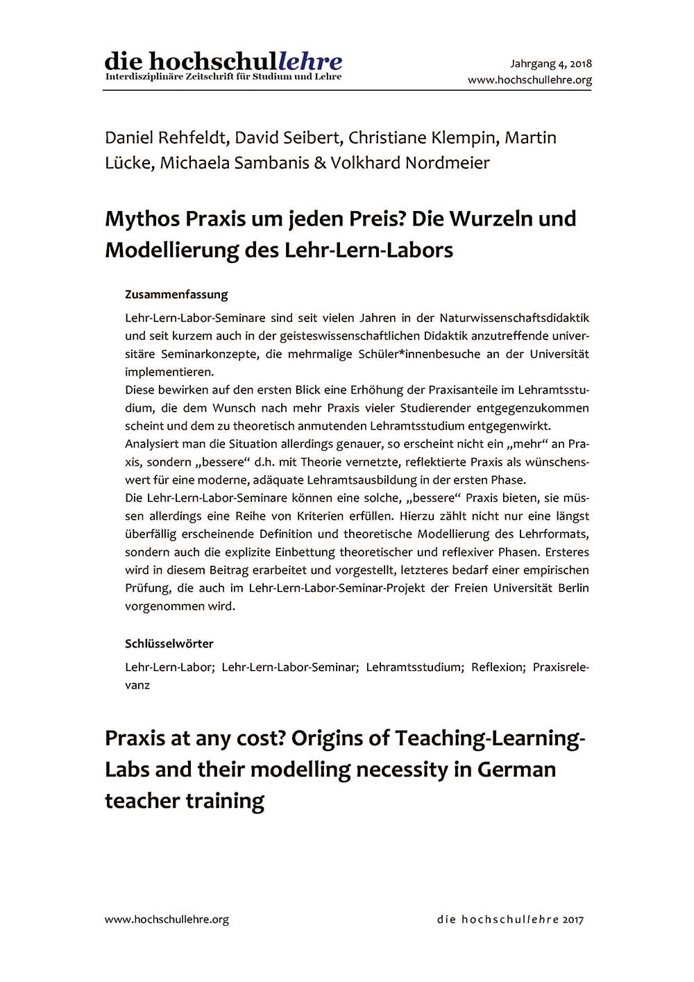 Die Lehr-Lern-Labor-Seminare können eine solche, "bessere" Praxis bieten, sie müssen allerdings eine Reihe von Kriterien erfüllen. Hierzu zählt nicht nur eine längst überfällig erscheinende Definition und theoretische Modellierung des Lehrformats, sondern auch die explizite Einbettung theoretischer und reflexiver Phasen. Ersteres wird in diesem Beitrag erarbeitet und vorgestellt, letzteres bedarf einer empirischen Prüfung, die auch im Lehr-Lern-Labor-Seminar-Projekt der Freien Universität Berlin vorgenommen wird.