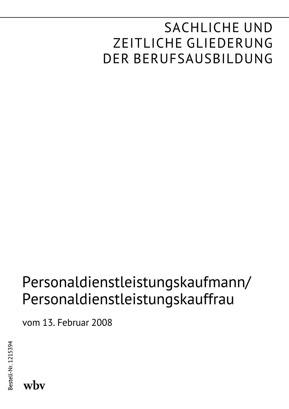 Die sachliche und zeitliche Gliederung der zu vermittelnden Kenntnisse und Fertigkeiten laut Ausbildungsrahmenplan der Ausbildungsverordnung vom 13. Februar 2008