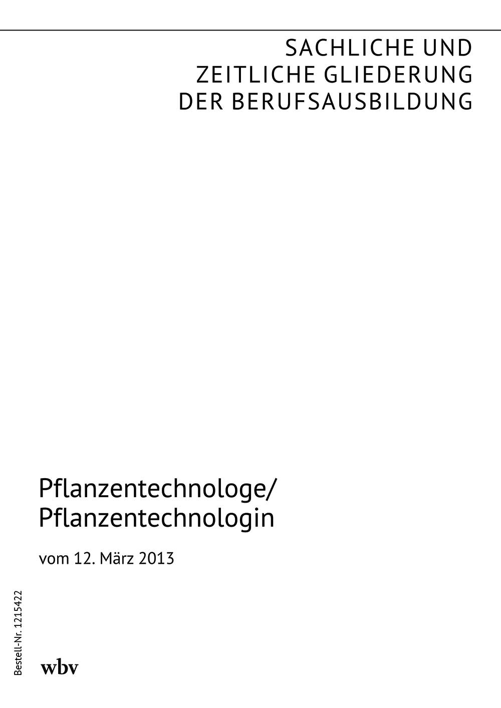 Die sachliche und zeitliche Gliederung der zu vermittelnden Kenntnisse und Fertigkeiten laut Ausbildungsrahmenplan der Ausbildungsverordnung vom 12. März 2013