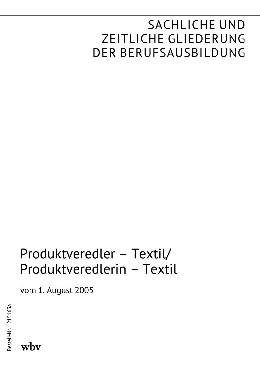 Die sachliche und zeitliche Gliederung der zu vermittelnden Kenntnisse und Fertigkeiten laut Ausbildungsrahmenplan der Ausbildungsverordnung vom 1. August 2005