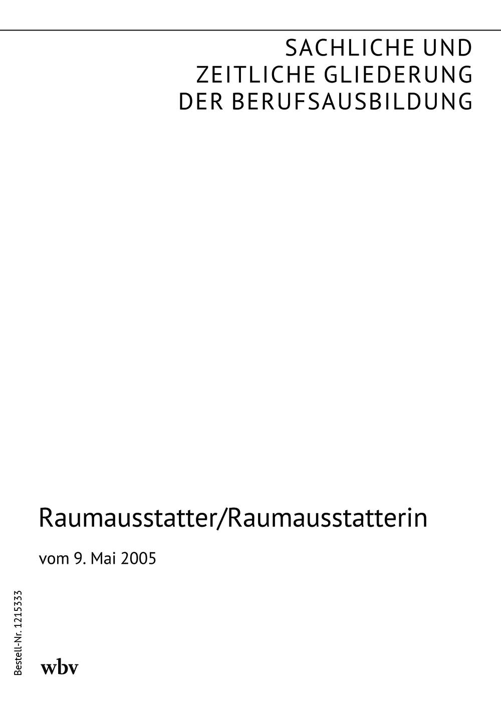 Die sachliche und zeitliche Gliederung der zu vermittelnden Kenntnisse und Fertigkeiten laut Ausbildungsrahmenplan der Ausbildungsverordnung vom 9. Mai 2005