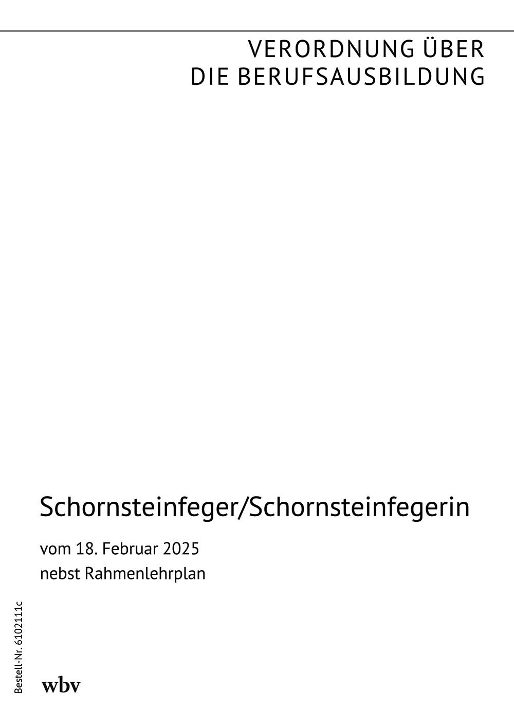 Verordnung über die Berufsausbildung zum Schornsteinfeger und zur Schornsteinfegerin (Schornsteinfeger-Ausbildungsverordnung - SchfAusbV), veröffentlicht im BGBl. Teil I Nr. 46 vom 24.02.2025 nebst Rahmenlehrplan (Beschluss der Bildungsministerkonferenz vom 20.03.2025)