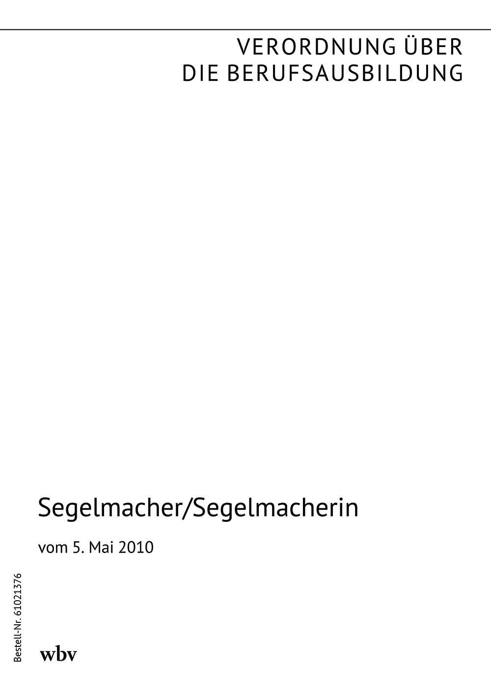 Verordnung über die Berufsausbildung zum Segelmacher/zur Segelmacherin vom 5. Mai 2010 (BGBl. I S. 564 vom 14. Mai 2010)