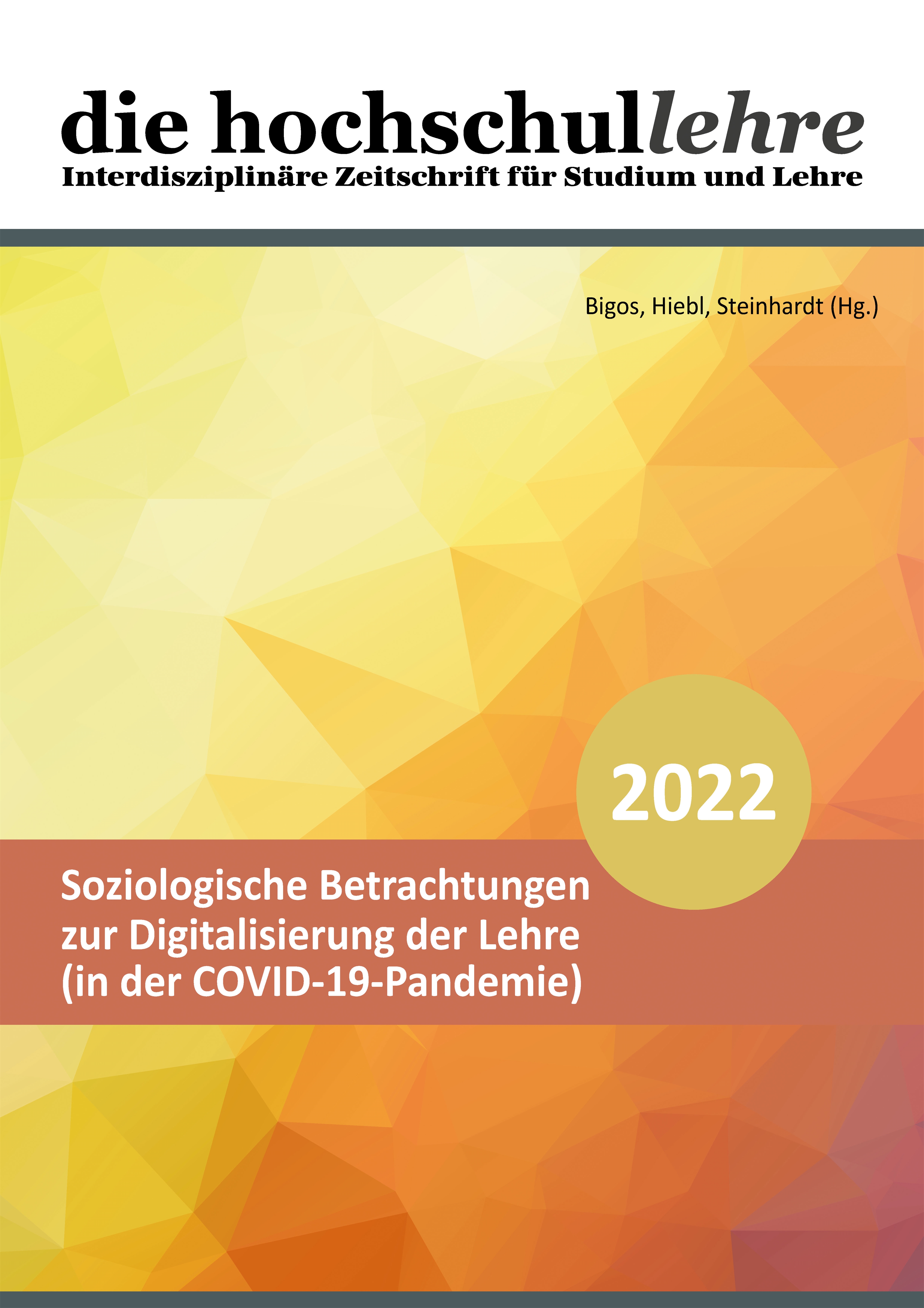 Bigos, M., Hiebl, J. & Steinhardt, I. (Hg.) (2022). Soziologische Betrachtungen zur Digitalisierung der Lehre (in der COVID-19-Pandemie). die hochschullehre, Jahrgang 8/2022. Bielefeld: wbv Publikation. DOI: 10.3278/HSLT2201W