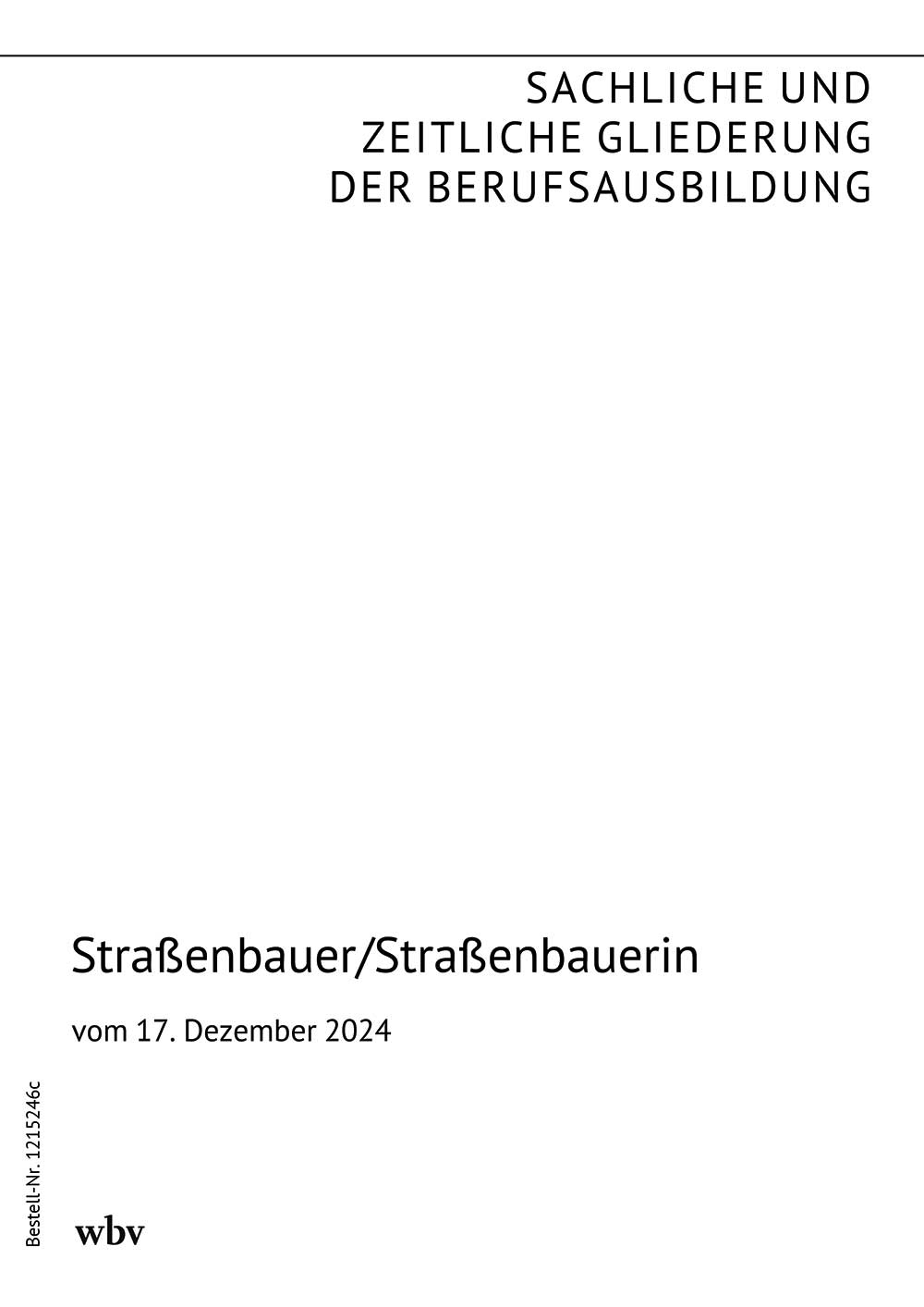 Die sachliche und zeitliche Gliederung der zu vermittelnden Kenntnisse und Fertigkeiten laut Ausbildungsrahmenplan der Ausbildungsverordnung vom 3. Juni 2024