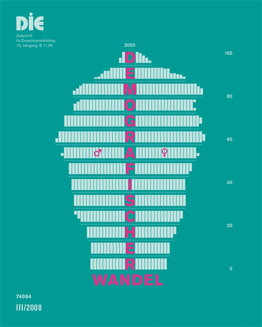 Das Heftcover macht die demografische Entwicklung bis 2050 dramatisch anschaulich. So viel hohes Alter war nie. Dass Schrumpfung nicht zwangsläufig ein Problem sein muss, zeigt Karl Otto Hondrich in seinem vielbeachteten Buch »Weniger sind mehr«. Diese eher konstruktive Haltung hat sich die Redaktion zu eigen gemacht und nach möglichen Strategien im Umgang mit den anstehenden Herausforderungen gefragt. Antworten der Betriebe, der kommunalen Weiterbildungseinrichtungen und der Weiterbildungsadministration lesen Sie im vorliegenden Heft.