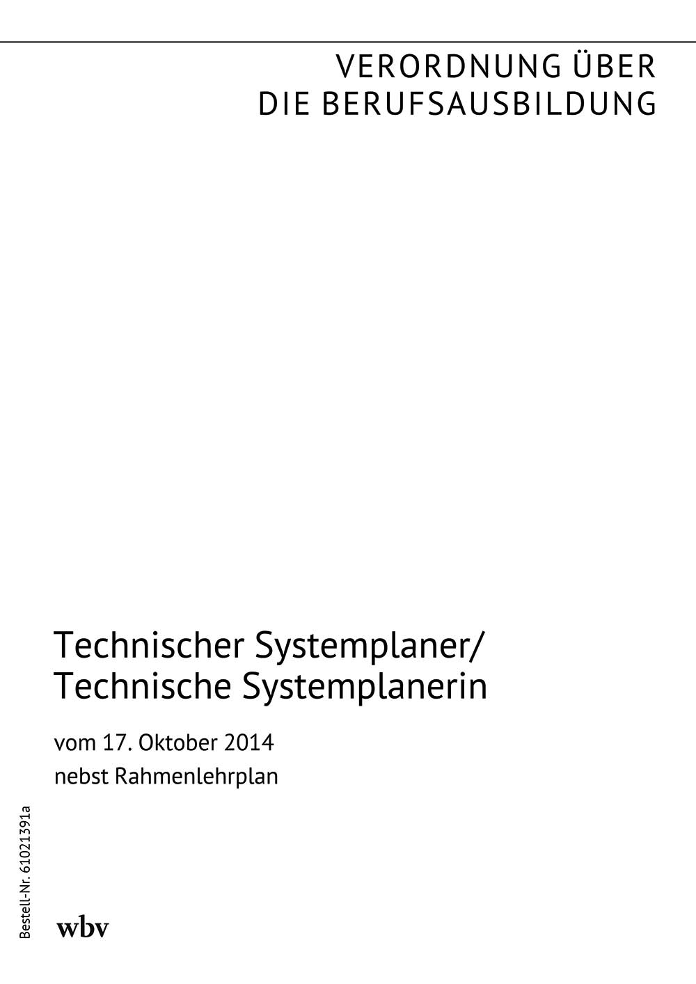 Verordnung über die Berufsausbildung zum Technischen Systemplaner/zur Technischen Systemplanerin vom 21. Juni 2011 (BGBl. I S. 1215 vom 28. Juni 2011) mit Rahmenlehrplan (Beschluss der Kultusministerkonferenz vom 27. Mai 2011), zuletzt geändert durch die Verordnung vom 17. Oktober 2014 (BGBl. I S. 1630 vom 20. Oktober 2014)
