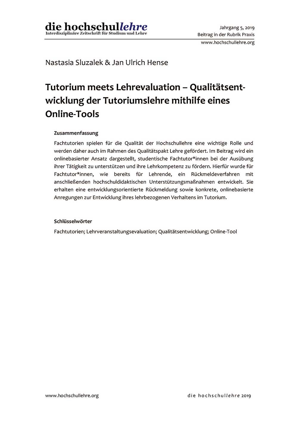 Fachtutorien spielen für die Qualität der Hochschullehre eine wichtige Rolle und werden daher auch im Rahmen des Qualitätspakt Lehre gefördert. Im Beitrag wird ein onlinebasierter Ansatz dargestellt, studentische Fachtutor*innen bei der Ausübung ihrer Tätigkeit zu unterstützen und ihre Lehrkompetenz zu fördern. Hierfür wurde für Fachtutor*innen, wie bereits für Lehrende, ein Rückmeldeverfahren mit anschließenden hochschuldidaktischen Unterstützungsmaßnahmen entwickelt. Sie erhalten eine entwicklungsorientierte Rückmeldung sowie konkrete, onlinebasierte Anregungen zur Entwicklung ihres lehrbezogenen Verhaltens im Tutorium.