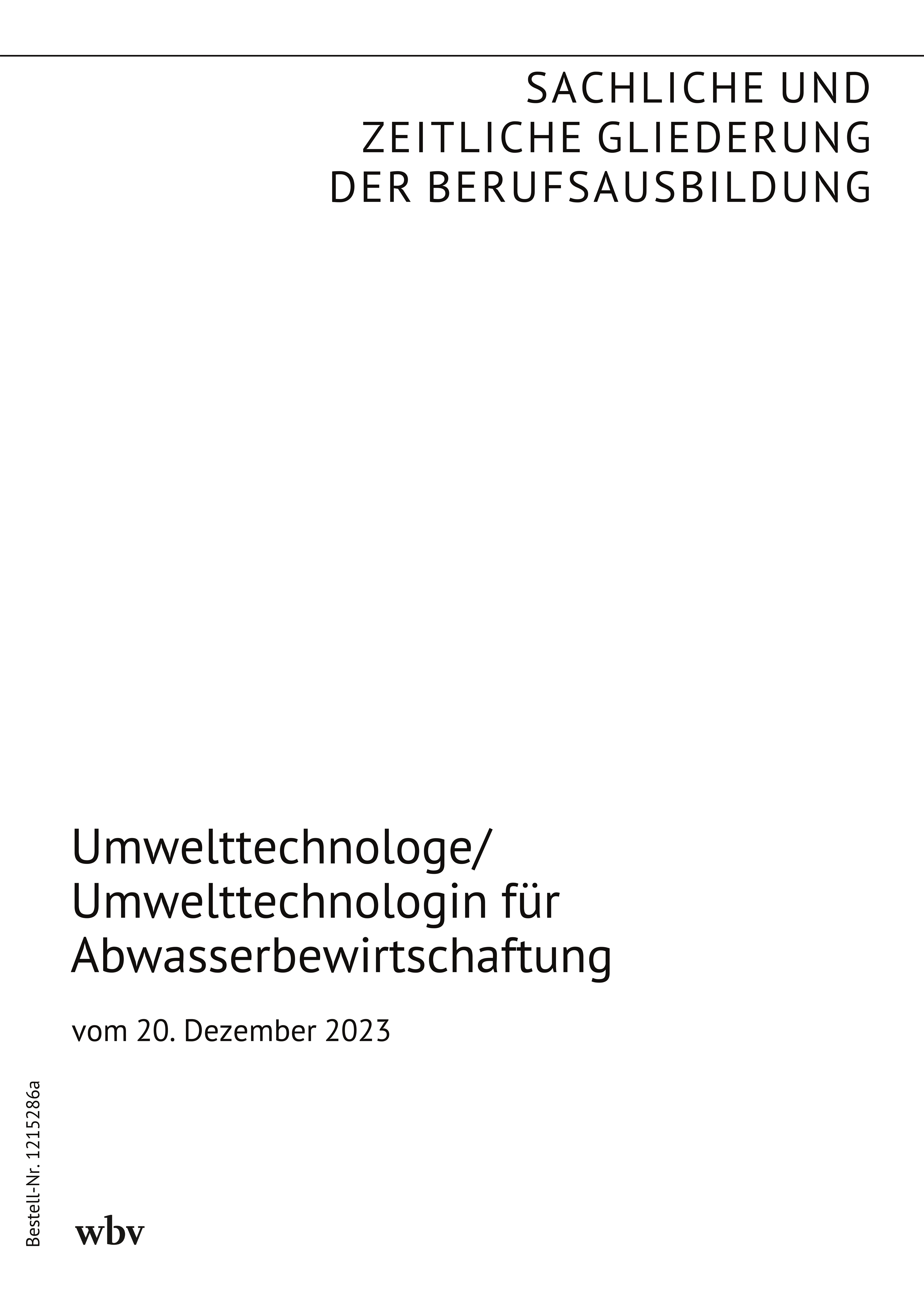Sachlicher und zeitlicher Gliederungsplan zur Verordnung über die Berufsausbildung zum Umwelttechnologen für Abwasserbewirtschaftung und zur Umwelttechnologin für Abwasserbewirtschaftung (Abwasserbewirtschaftungsumwelttechnologen- Ausbildungsverordnung - AbwUTechAusbV)