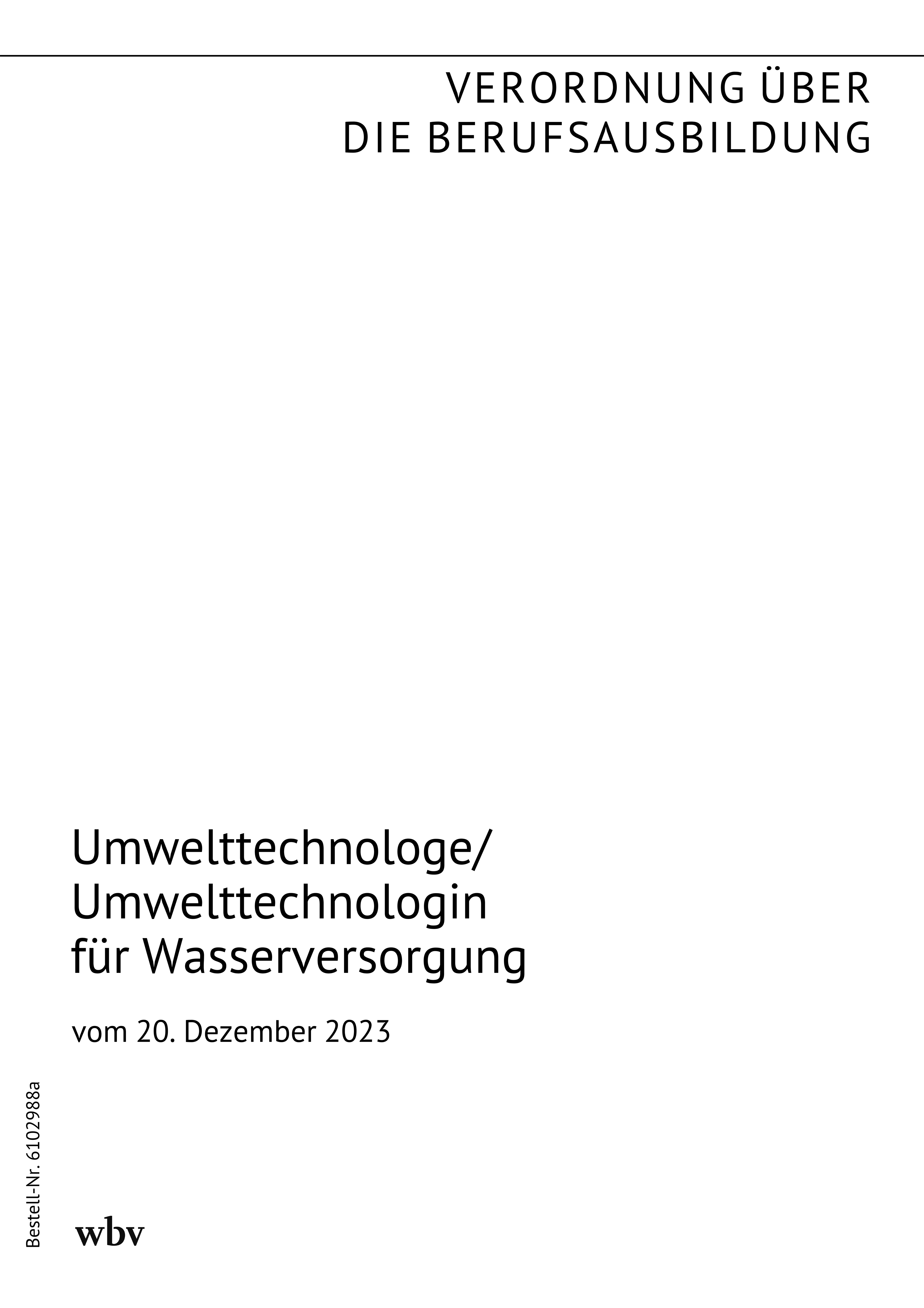 Verordnung über die Berufsausbildung zum Umwelttechnologen für Wasserversorgung und zur Umwelttechnologin für Wasserversorgung (Wasserversorgungsumwelttechnologen-Ausbildungsverordnung - WasUTechAusbV) vom 20. Dezember 2023
