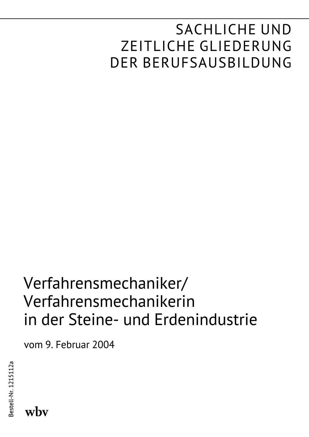 Die sachliche und zeitliche Gliederung der zu vermittelnden Kenntnisse und Fertigkeiten laut Ausbildungsrahmenplan der Ausbildungsverordnung vom 9. Februar 2004