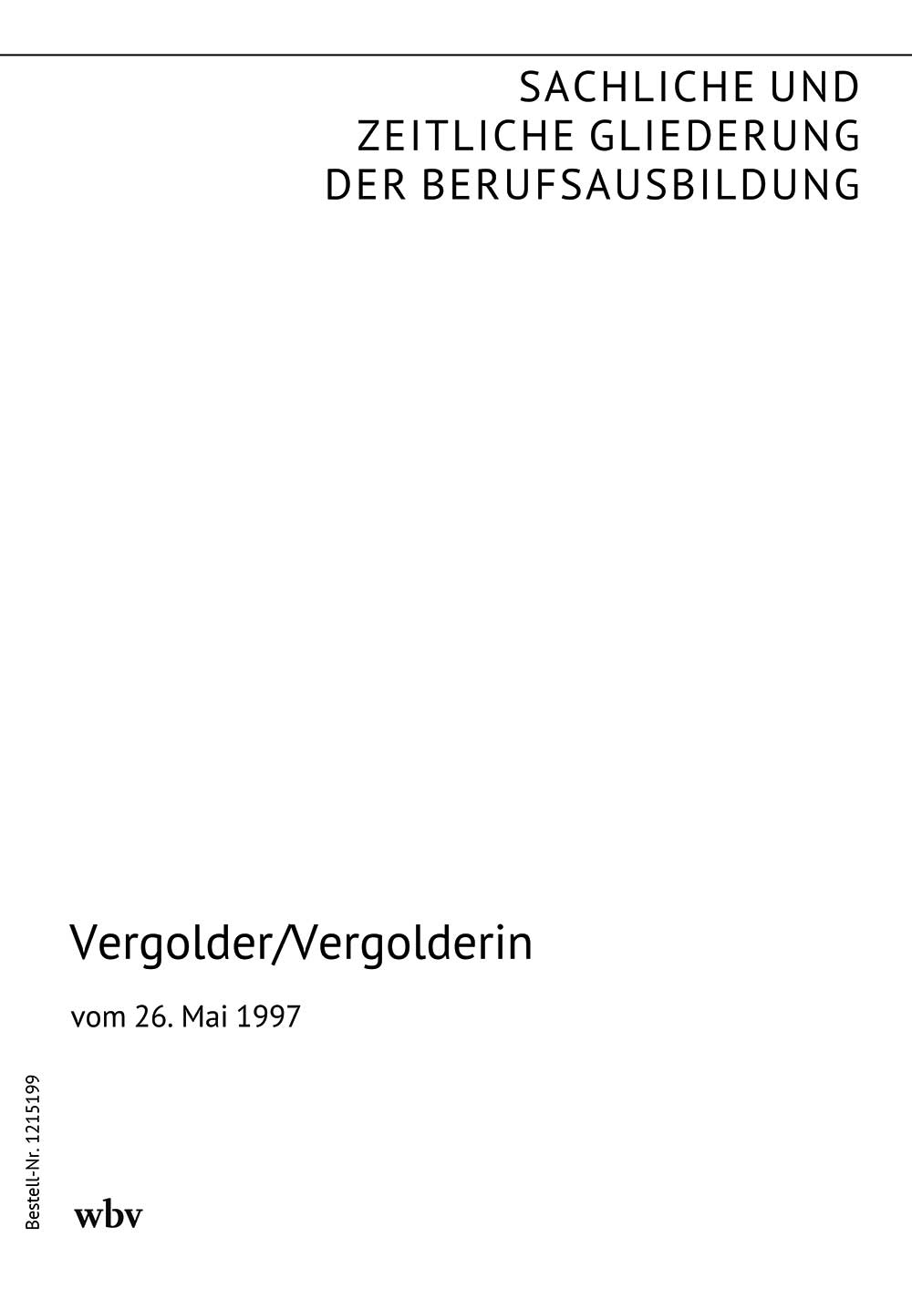 Die sachliche und zeitliche Gliederung der zu vermittelnden Kenntnisse und Fertigkeiten laut Ausbildungsrahmenplan der Ausbildungsverordnung vom 26. Mai 1997