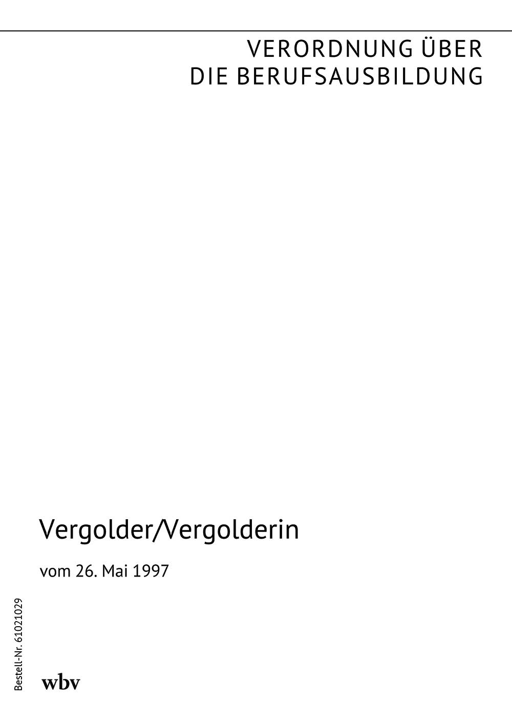 Verordnung über die Berufsausbildung zum Vergolder/zur Vergolderin vom 26. Mai 1997 (BGBl. I S. 1241 vom 2. Juni 1997)