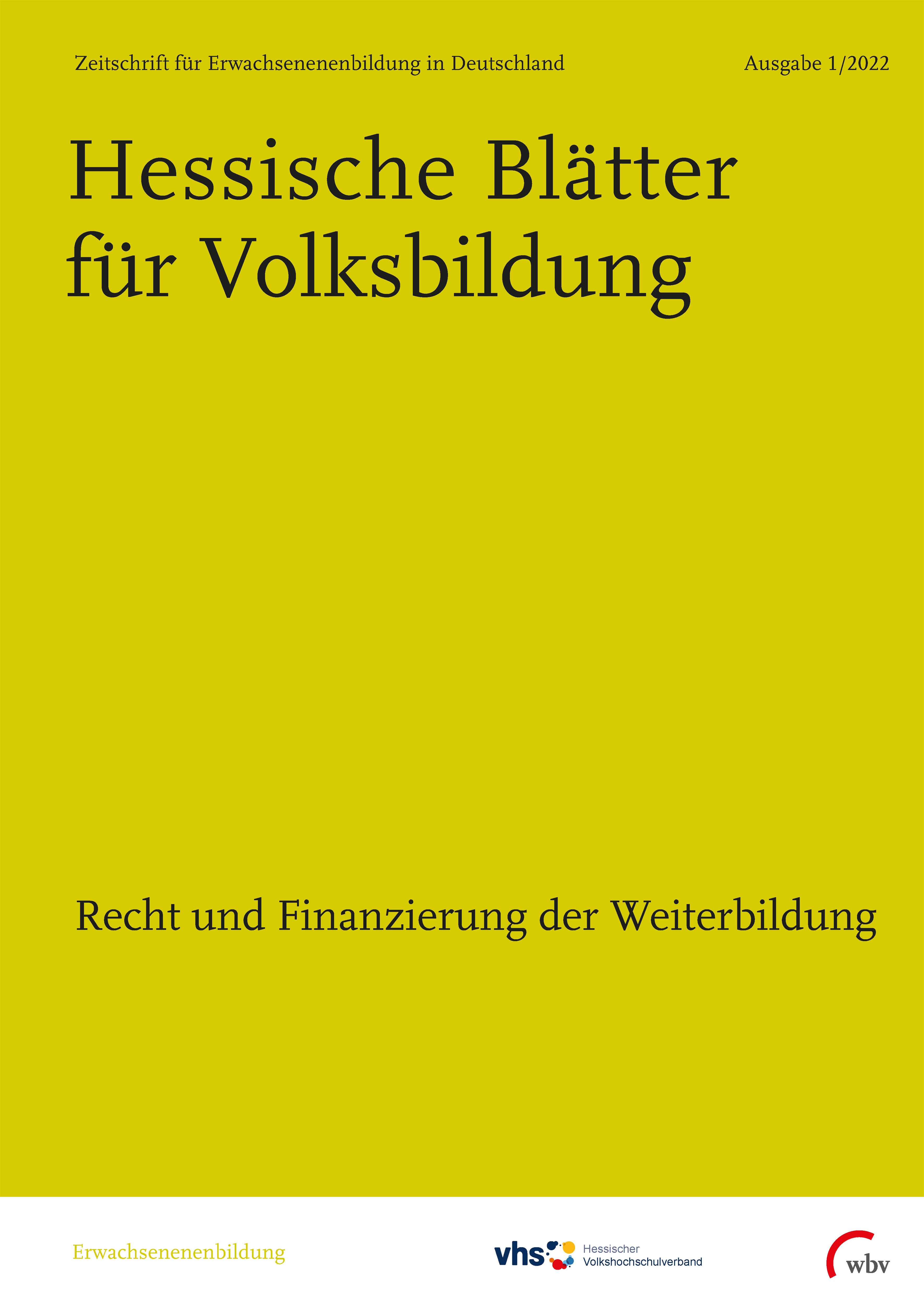 Nuissl, Ekkehard (2022). Weiterbildungsrecht. Hessische Blätter für Volksbildung, 72(1). 18-31. Bielefeld: wbv Publikation. https://doi.org/10.3278/HBV2201W003