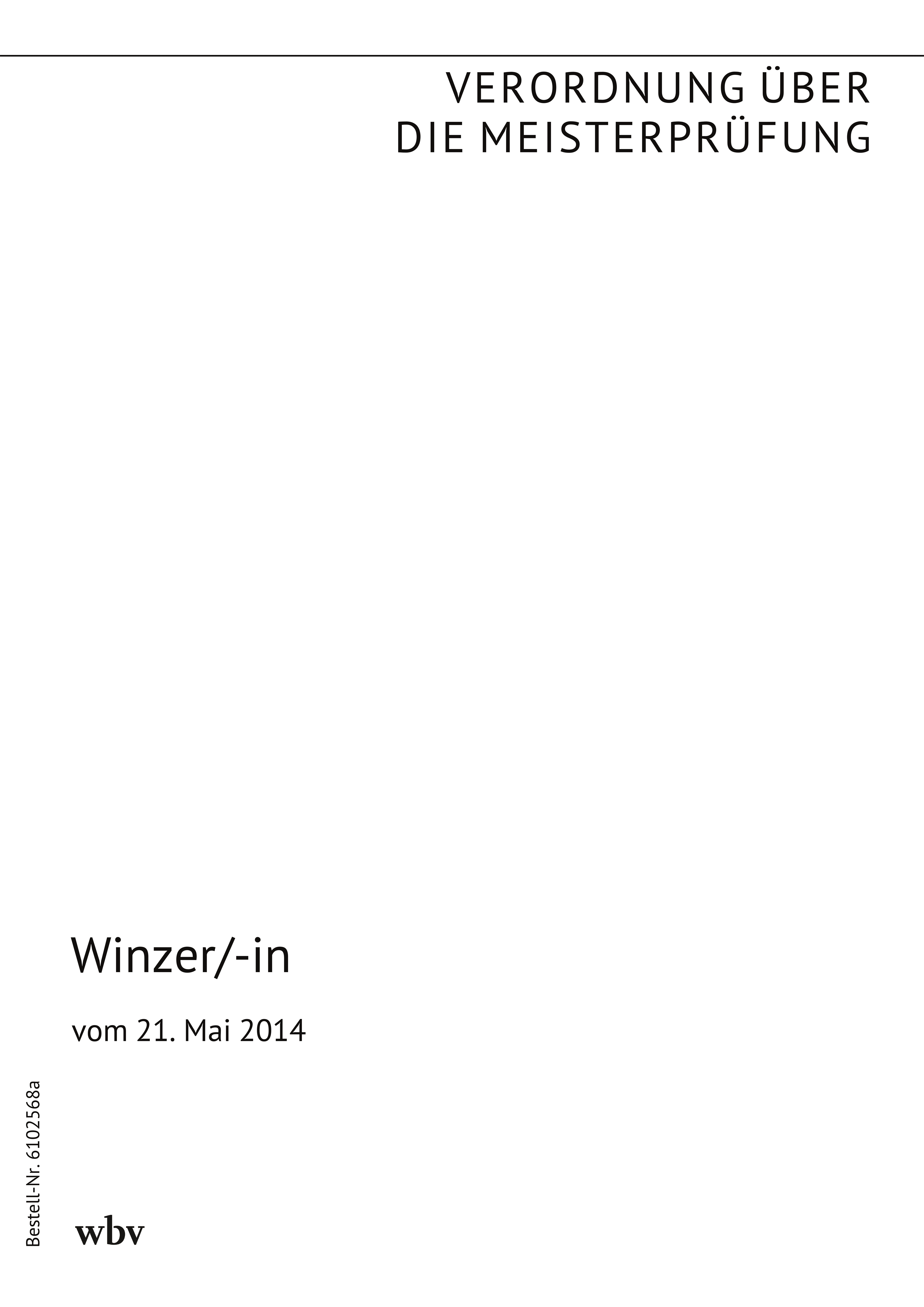 Verordnung über die Anforderungen in der Meisterprüfung für den Beruf Winzer/Winzerin vom 27. August 2001 (BGBl. I S. 2255 vom 31. August 2001) zuletzt geändert durch die Verordnung (BGBl. I Nr. 21 S. 548) vom 21. Mai 2014