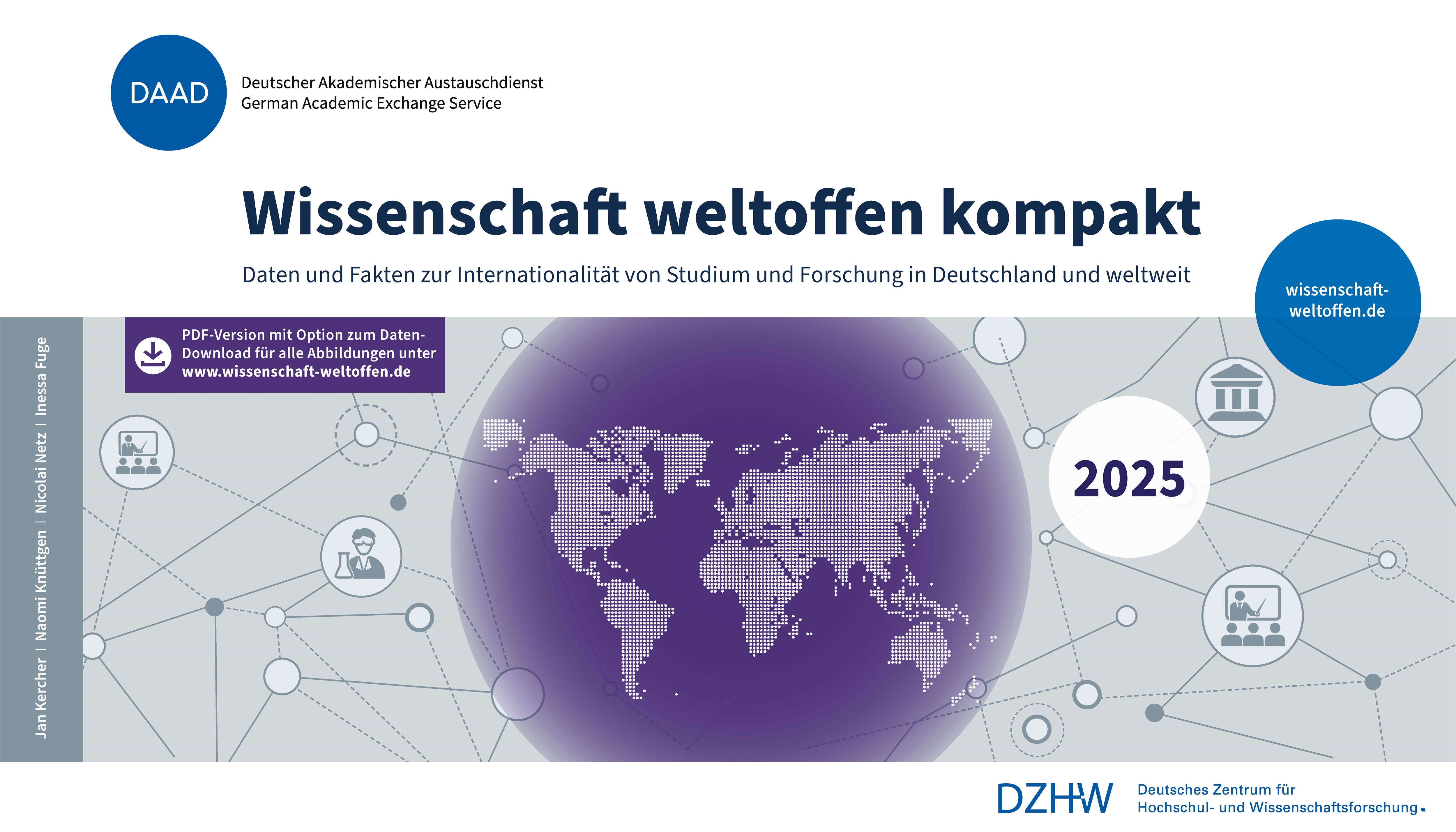 Kercher, J., Knüttgen, N., Netz, N., & Fuge, I. (2025). Wissenschaft weltoffen kompakt 2025. Daten und Fakten zur Internationalität von Studium und Forschung in Deutschland und weltweit. wbv. https://doi.org/10.3278/9783763978687