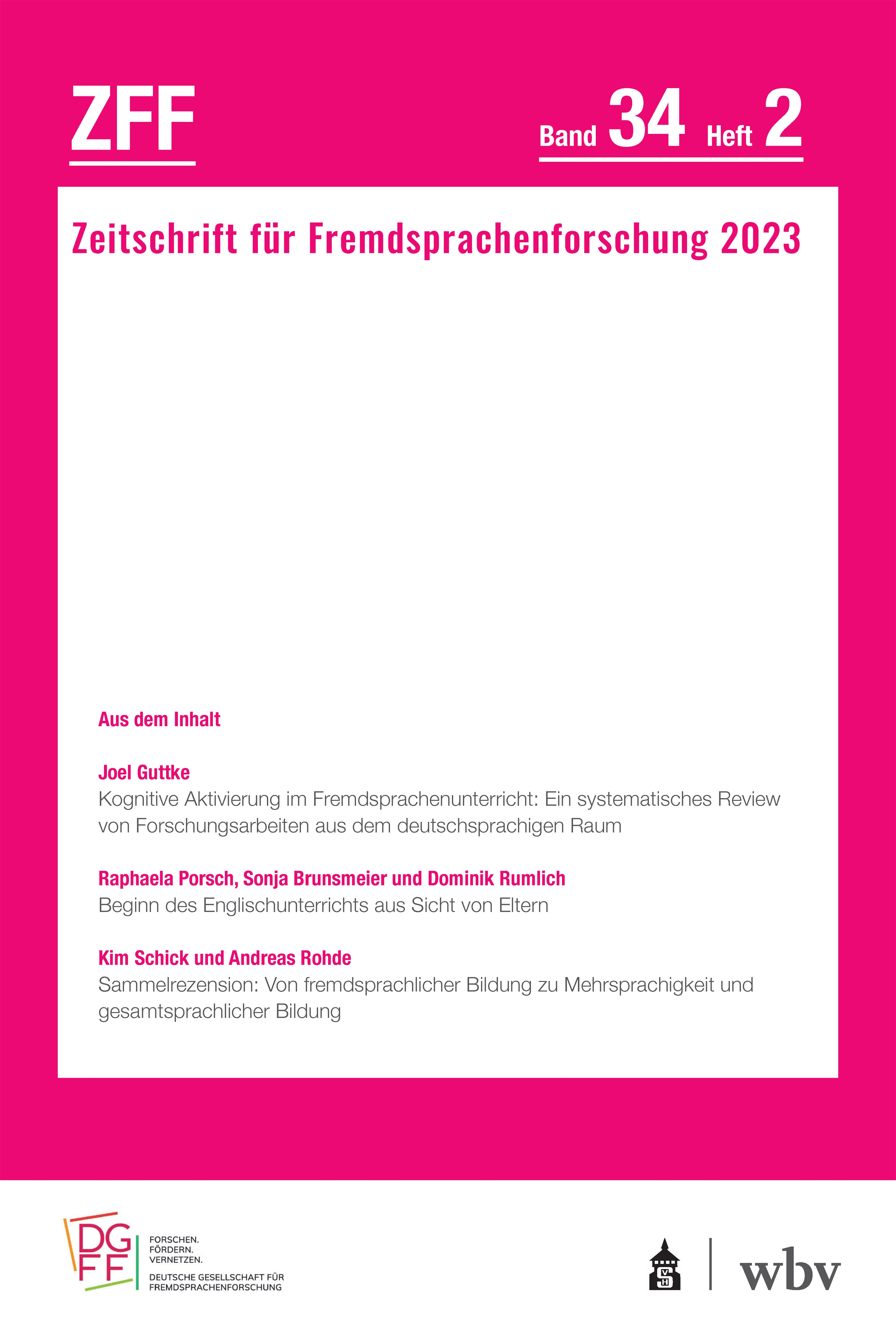 Deutsche Gesellschaft für Fremdsprachenforschung (Hg.)(2023). Zeitschrift für Fremdsprachenforschung, 34(2). Bielefeld: wbv Publikation.