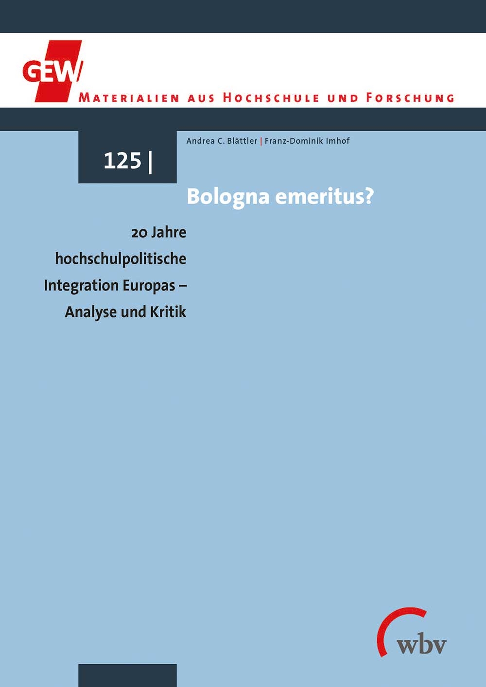 Die Expertise von Andrea C. Blättler und Franz-Dominik Imhof beschreibt, analysiert und erklärt die Entwicklung des Bologna-Prozesses sowie den daraus entstehenden europäischen Hochschulraum.