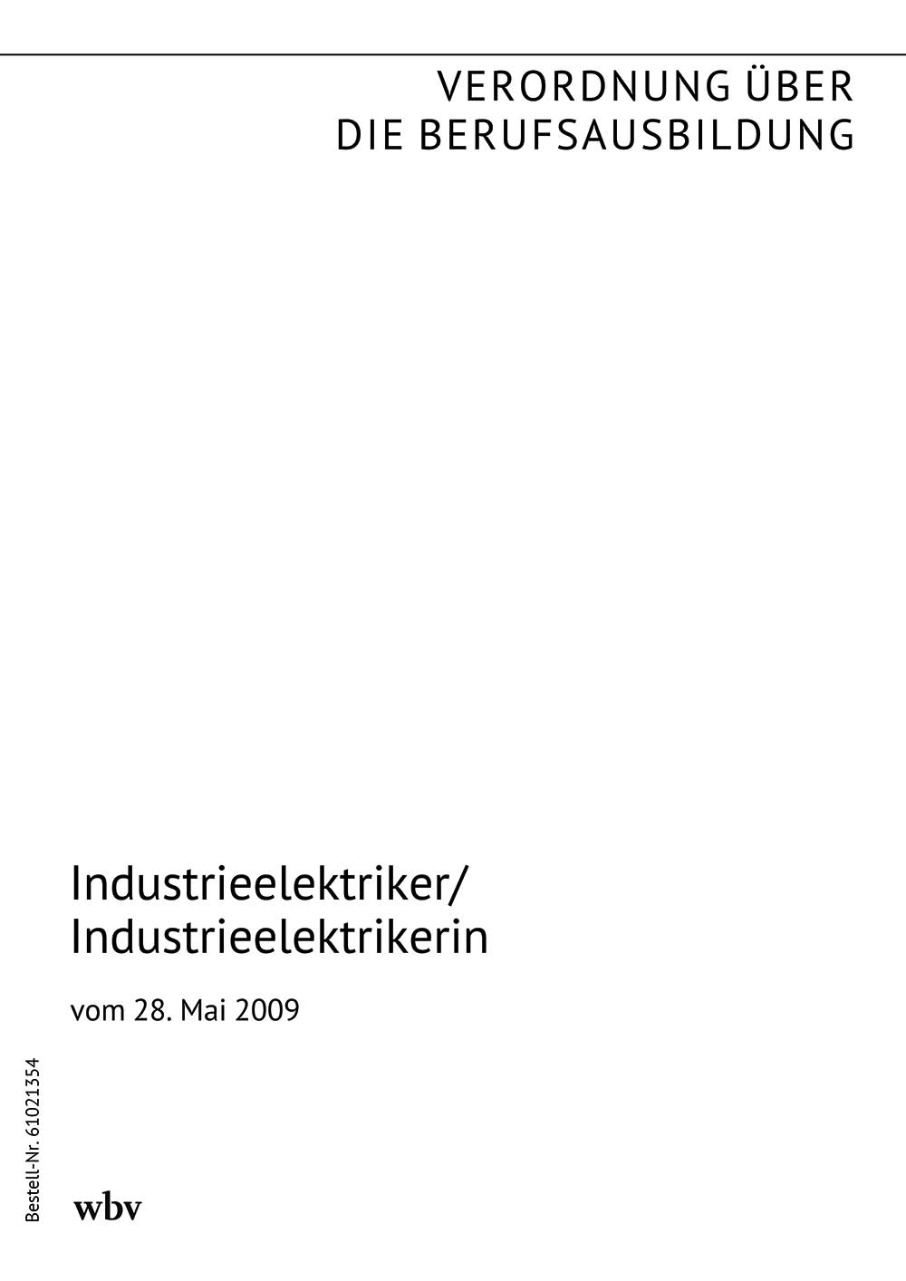 Verordnung über die Berufsausbildung zum Industrieelektriker/zur Industrieelektrikerin vom 28. Mai 2009 (BGBl. I S. 1201 vom 4. Juni 2009)