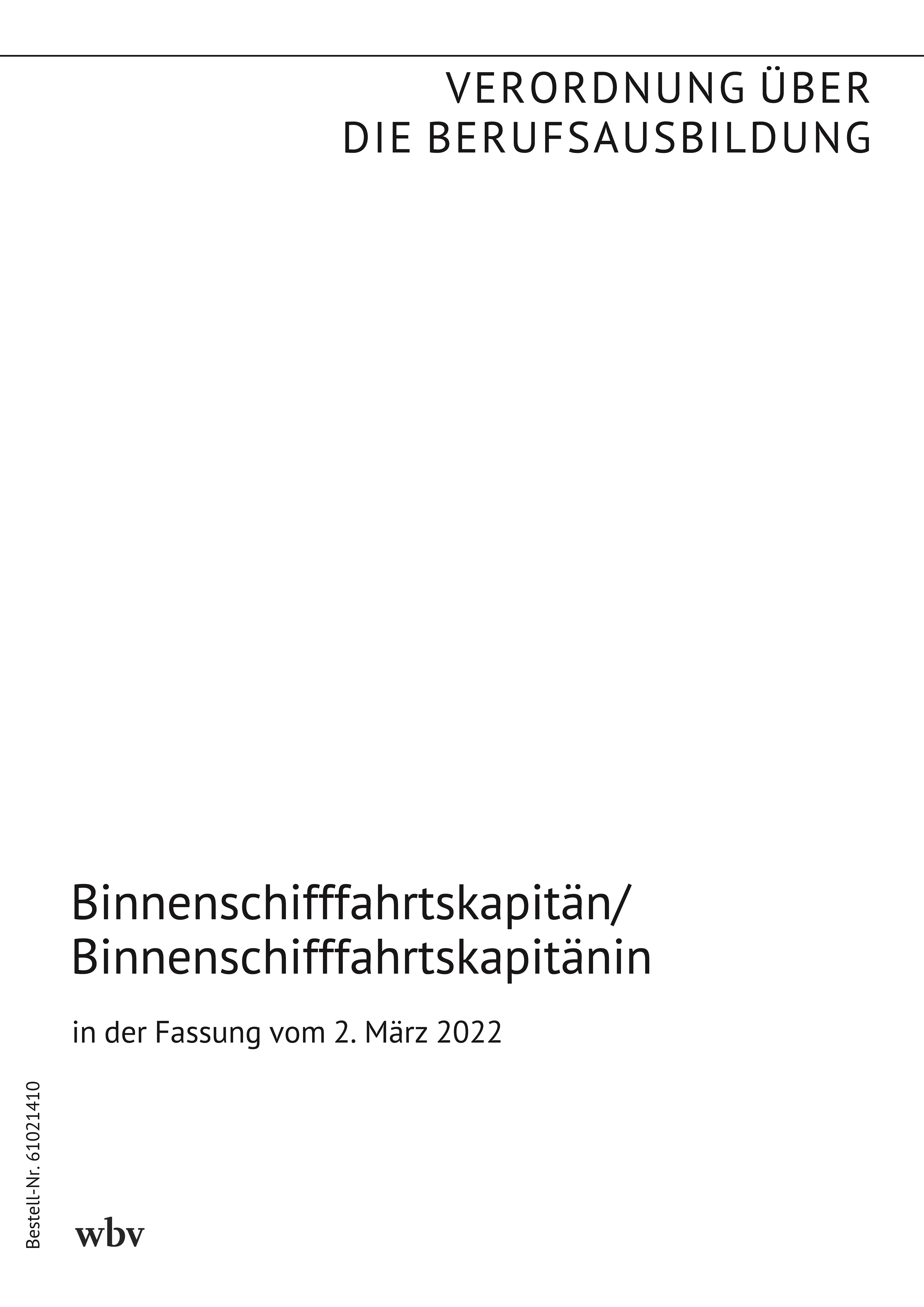 Verordnung über die Berufsausbildung zum Binnenschifffahrtskapitän und zur Binnenschifffahrtskapitänin vom 2. März 2022 (BGBl. I S. 271)