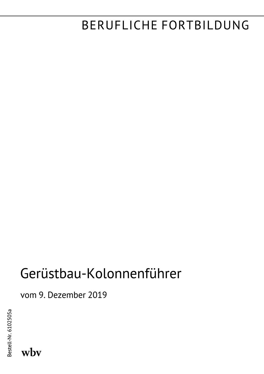 Verordnung über die Prüfung zum anerkannten Abschluss Geprüfter Gerüstbau-Kolonnenführer vom 14. November 1978 (BGBl. I S. 1795) zuletzt geändert durch Artikel 34 der Verordnung vom 9. Dezember 2019 (BGBl. I S. 2153)