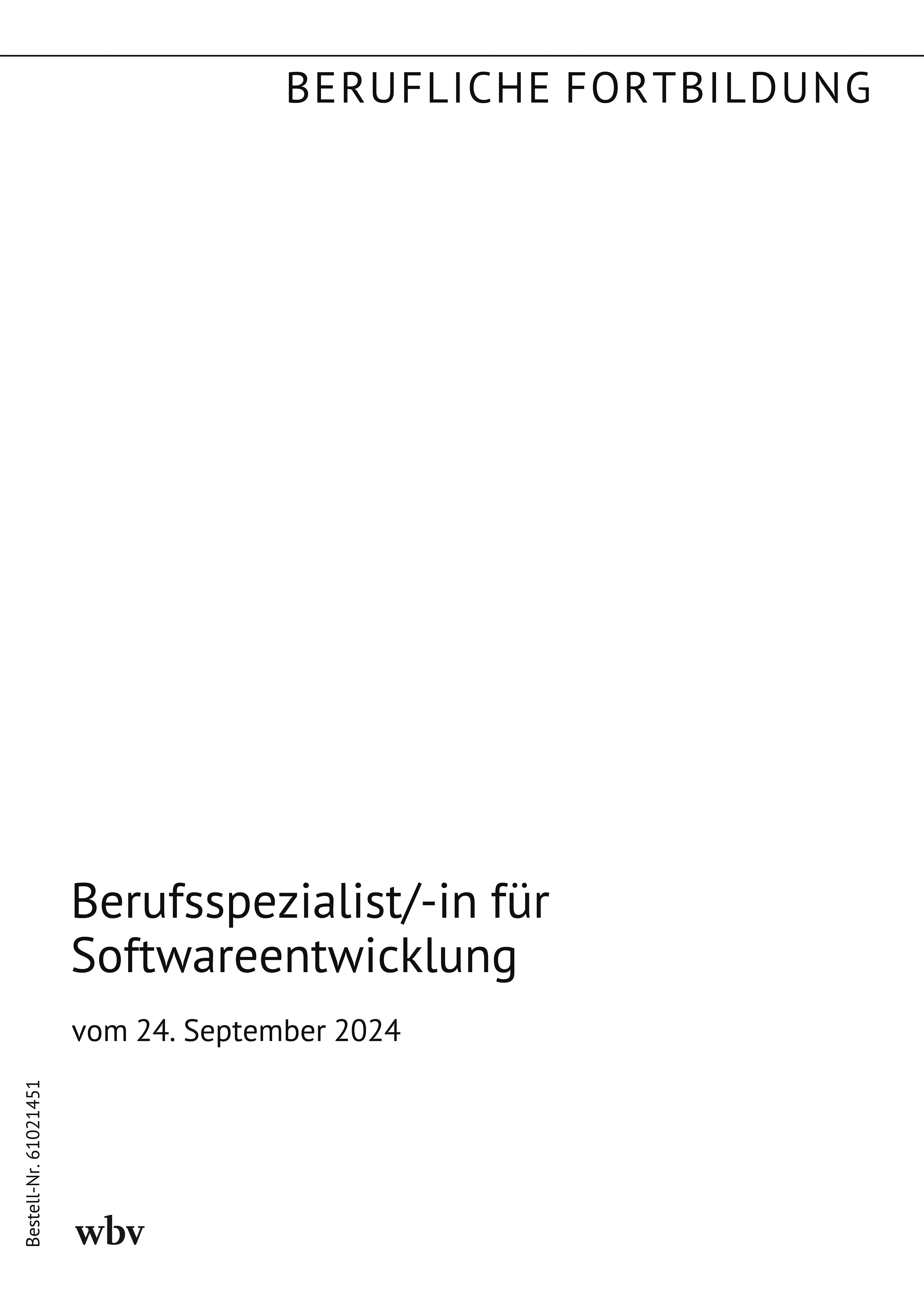 Verordnung über die Prüfung zum anerkannten Fortbildungsabschluss mit der Bezeichnung Geprüfter Berufsspezialist für Softwareentwicklung oder Geprüfte Berufsspezialistin für Softwareentwicklung (Softwareentwicklung-Fortbildungsprüfungsverordnung - SEFPrV), veröffentlicht in der Verordnung zur Neuordnung der Fortbildungsprüfungen der Geprüften Berufsspezialisten und der Geprüften Berufsspezialistinnen im Bereich der Informations- und Telekommunikationstechnik (BGBl. I Nr. 296 vom 2. Oktober 2024)