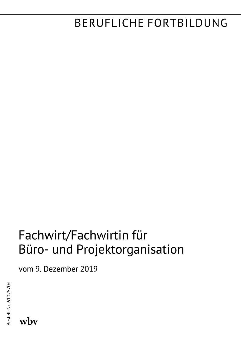 Verordnung über die Prüfung zum anerkannten Fortbildungsabschluss Geprüfter Fachwirt für Büro- und Projektorganisation/Geprüfte Fachwirtin für Büro- und Projektorganisation vom 9. Februar 2012 (BGBl. I S. 268), zuletzt geändert durch Artikel 57 der Verordnung vom 9. Dezember 2019 (BGBl. I S. 2153)